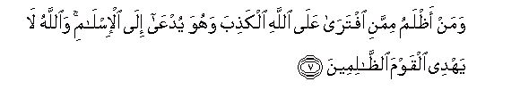 7. Waman athlamu mimmani iftara AAala Allahi alkathiba wahuwa yudAAa ila al-islami waAllahu la yahdee alqawma alththalimeena