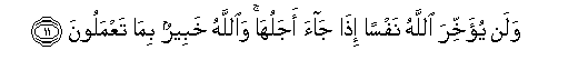 11. Walan yu-akhkhira Allahu nafsan itha jaa ajaluha waAllahu khabeerun bima taAAmaloona