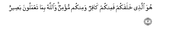 2. Huwa allathee khalaqakum faminkum kafirun waminkum mu/minun waAllahu bima taAAmaloona baseerun