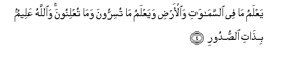 4. YaAAlamu ma fee alssamawati waal-ardi wayaAAlamu ma tusirroona wama tuAAlinoona waAllahu AAaleemun bithati alssudoori