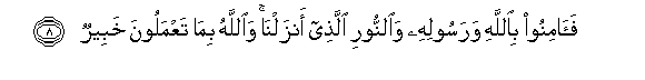 8. Faaminoo biAllahi warasoolihi waalnnoori allathee anzalna waAllahu bima taAAmaloona khabeerun
