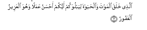2. Allathee khalaqa almawta waalhayata liyabluwakum ayyukum ahsanu AAamalan wahuwa alAAazeezu alghafooru
