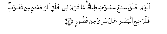 3. Allathee khalaqa sabAAa samawatin tibaqan ma tara fee khalqi alrrahmani min tafawutin fairjiAAi albasara hal tara min futoorin