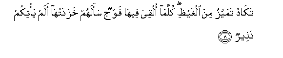 8. Takadu tamayyazu mina alghaythi kullama olqiya feeha fawjun saalahum khazanatuha alam ya/tikum natheerun