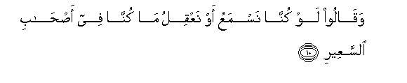 10. They will further say: "Had we but listened or used our intelligence, we should not (now) be among the Companions of the Blazing Fire!"