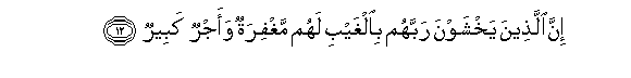 12. Inna allatheena yakhshawna rabbahum bialghaybi lahum maghfiratun waajrun kabeerun