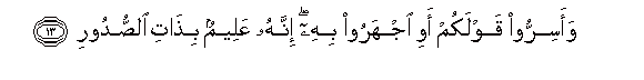 13. Waasirroo qawlakum awi ijharoo bihi innahu AAaleemun bithati alssudoori
