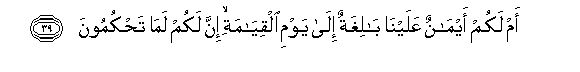 39. Am lakum aymanun AAalayna balighatun ila yawmi alqiyamati inna lakum lama tahkumoona
