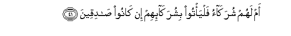 41. Am lahum shurakao falya/too bishuraka-ihim in kanoo sadiqeena