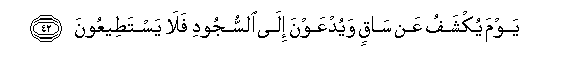 42. Yawma yukshafu AAan saqin wayudAAawna ila alssujoodi fala yastateeAAoona