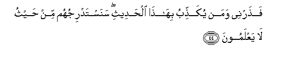44. Fatharnee waman yukaththibu bihatha alhadeethi sanastadrijuhum min haythu la yaAAlamoona
