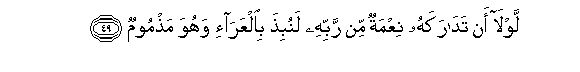 49. Lawla an tadarakahu niAAmatun min rabbihi lanubitha bialAAara-i wahuwa mathmoomun