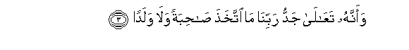3. Waannahu taAAala jaddu rabbina ma ittakhatha sahibatan wala waladan