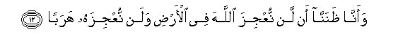 12. Wanna thananna an lan nuAAjiza Allaha fee al-ardi walan nuAAjizahu haraban