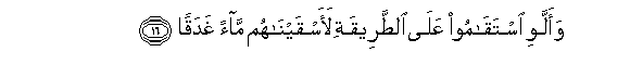 16. Waallawi istaqamoo AAala alttareeqati laasqaynahum maan ghadaqan