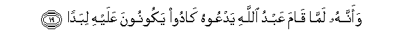 19. Waannahu lamma qama AAabdu Allahi yadAAoohu kadoo yakoonoona AAalayhi libadan