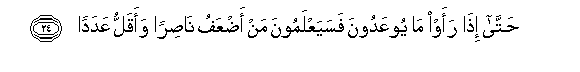 24. Hatta itha raaw ma yooAAadoona fasayaAAlamoona man adAAafu nasiran waaqallu AAadadan