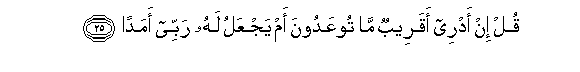 25. Qul in adree aqareebun ma tooAAadoona am yajAAalu lahu rabbee amadan