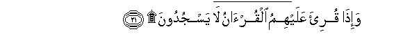 21. Wa-itha quri-a AAalayhimu alqur-anu la yasjudoona