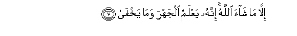 7. Illa ma shaa Allahu innahu yaAAlamu aljahra wama yakhfa
