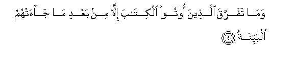 4. Wama tafarraqa allatheena ootoo alkitaba illa min baAAdi ma jaat-humu albayyinatu