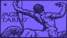 William BlakeSagittarius has both a knack for putting its foot in its mouth, and for wearing its heart on its sleeve. Sadge's naíve enthusiasm and exuberance is embarrassing to more reserved types, whose resulting scorn crushes Sadge's hopes - for the moment. Sagittarian optimism usually prevails, though.