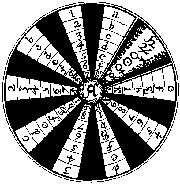 Est & alter modus quo quartum elementum tertio super additur; nempé L. R. & N. mediantibus inter elementum adsistens & subsistens vt in prima combinatione huius compositi T R V N C V S. in secunda huius compositi I N C R A S S A T V S. In tertia huius compositi P E R M A G N V S. Ad quorum elementorum præsentiam atque locum denotandum; aliquos se habendi modos, vel accidentia sensibilia in subiecto, vel cum subiecto, vel ad subiectum poteris destinare. Ad ipsum mihi conferre solebat rationale adiectum quod vel sedens tertium, vel innixus secundum, vel stans primum adsignificabat. Quod si alia elementa præter hæc se obtulerint, quod vix apud Latinos Græcos, Hebræos, Chaldeos, Persas, Italos, Arabes, & Hispanos, accidere potest: hac luce qua vides nos subuenisse presignatis tribus: cæteris aliis prouideto.