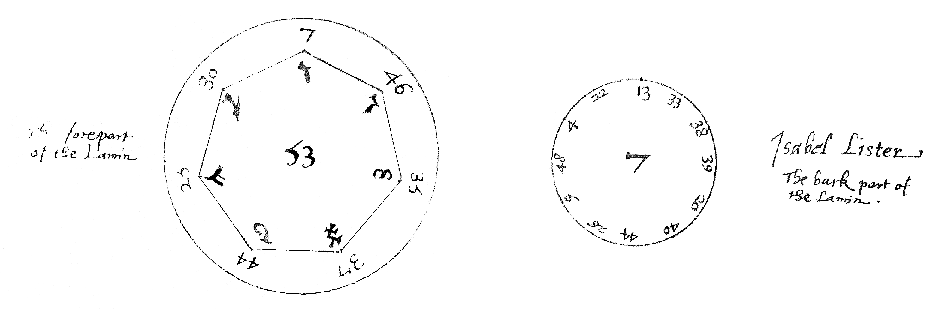 E.K. He sealed them all in the forehead: the 14 and their principal, their sealing was as if they had been branded. They sunk all 15 downward through the floore of the Chamber, and there came a thing like a wind & pluckt them by the feet away.