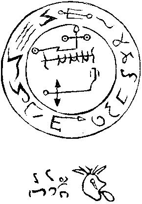 SCONGIURAZIONEIo ti scongiuro, o forma di ottensili N. per il Dio padre onnipotente, per la virtù del cielo e delle stelle predominante, per la virtù degli elementi delle pietre delle piante, e di tutti gli animali per la virtù delle tempeste, e dei venti, che tu ricevi una tale virtù che per te noi possiamo ottenere perfezione in tutte le cose, delle quali noi vogliamo arrivare, e che noi pretendiamo di fare senza male nè inganni, per il Dio creatore del Sole e degli Angioli amen, si recitano sopra i sette salmi e le parole sequenti, Dalmaley, Lamech, Cadat, Paneia, Velous, Merroè Lamideeh, Calidulechi, Anereton, Mitraton, Angeli purissimi siete i guardiani di questi utensili che sono necessarii a molte cose.[-43-] DEL COLTELLOIn giorni ed ora di Marte, in luna crescente, farete fare un coltello di acciajo nuovo, che sia d'una grossossa di potere tagliare il collo d'un capretto in un sol colpo, al quale gli farete un manico di legno, in giorno ed ora di Marte come sopra, e col bollino gli inciderete sul detto manico.
