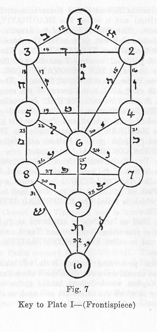 These paths are numbered from ELEVEN to THIRTY-TWO each corresponding to a LETTER of the Hebrew alphabet shown by the leading authorities as in order from KETHER to MALKUTH.