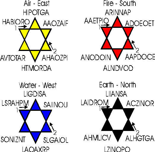 Draw the hexagrams in the quarters indicated, vibrating the names while drawing.