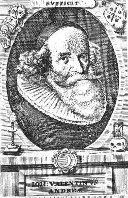 Johann Valentin Andreae was a Lutheran pastor, and the author of The Chymical Wedding of Christian Rosencreutz (1616), a light and sometimes humorous allegorical fantasy of the marriage of the Sun and Moon. Some skeptical authors credit Andrea with the authorship of the "Fama Fraternitatis" and the "Confessio Fraternitatis," and with the creation of the Rosicrucian mythos as a hoax. The Rosy Cross emblem may have originated with Andrea's family crest. Crowley wrote a parody of the Chymical Wedding titled "Liber Ambrosii Magi Hortus Rosarum" (see Collected Works, vol. II).