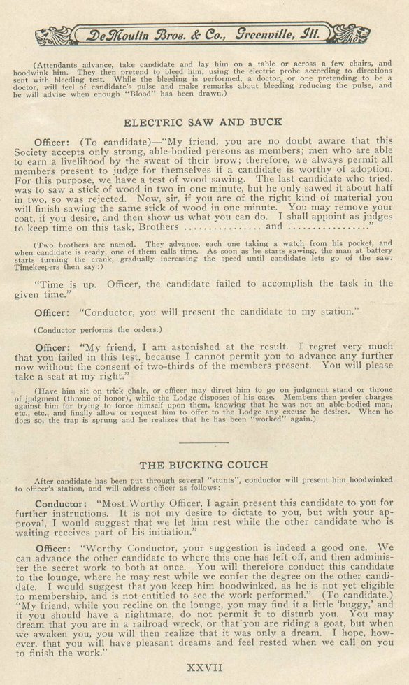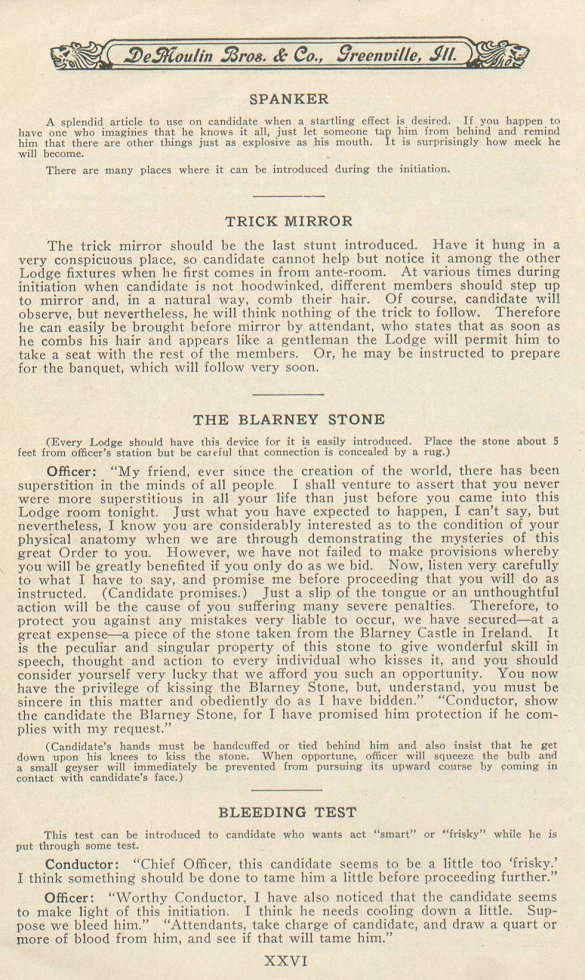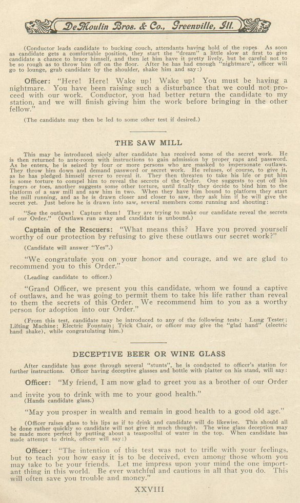 Spanker - Trick Mirror - The Blarney Stone - Bleeding Test - Electric Saw and Buck - The Bucking Couch - The Saw Mill - Deceptive Beer of Wine Glass