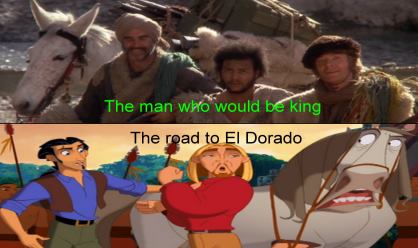 Because every member of the Illuminati is briefed on these matters, these are stories they are likely to retell. This initiaited knowledge includes the various gods and their respective personalities and histories. With everyone drawing from a single source of events, personalities types and character histories, it is inevitable that 2 retellings will eventually resemble eachother to such the extent as to betray both encodings; as was seen with The Man who would be king, Stargate, and The road to El Dorado. My audio commentary regarding this matter.
