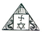 4th, KAMA, represented as a five-pointed star, with the “horns of evil” upwards, embracing the LOWER MANAS, colored Blood-Red.