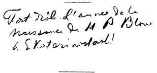 «Fort drôle. L’année de la naissance de H. P. Blav. à Ekaterinoslaw!»