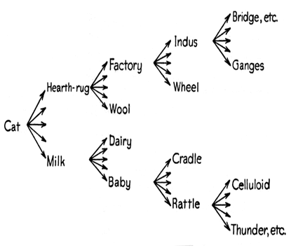 All these links could be expressed in a more familiar way by simply making sentences to connect each pair of words. That might be more convenient for a mind quite unaccustomed to scientific methods and formulae. Nevertheless, the method is not as good as that of naming the Road between each pair, because the act of pausing with the two ideas before the rnind while finding the name of the Road connecting them creates a momentary concentration on the two ideas together, which is the chief cause of their being afterwards remembered together.