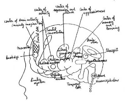 In the nervous system where dopamine acts, when drawing the path of nerve A-10, it comes out from the mesencephalon, extends one ramification to the hippocampus and spreads to the frontal lobe, which in mental activities, specially increases imagination. This nervous transmission substance is dopamine.