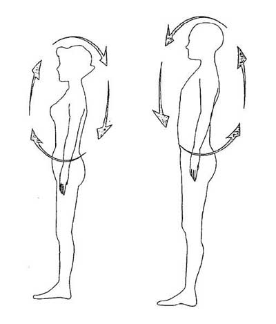 In Shooshuuten, regarding men, Ki first circulates upwards following the spine and then downwards to the lowest part of the abdomen.  Regarding women, it circulates in the opposite direction, from the abdomen to the chest, from there to the head, and finally to the back.  According to Kikou, the human body is a small universe.