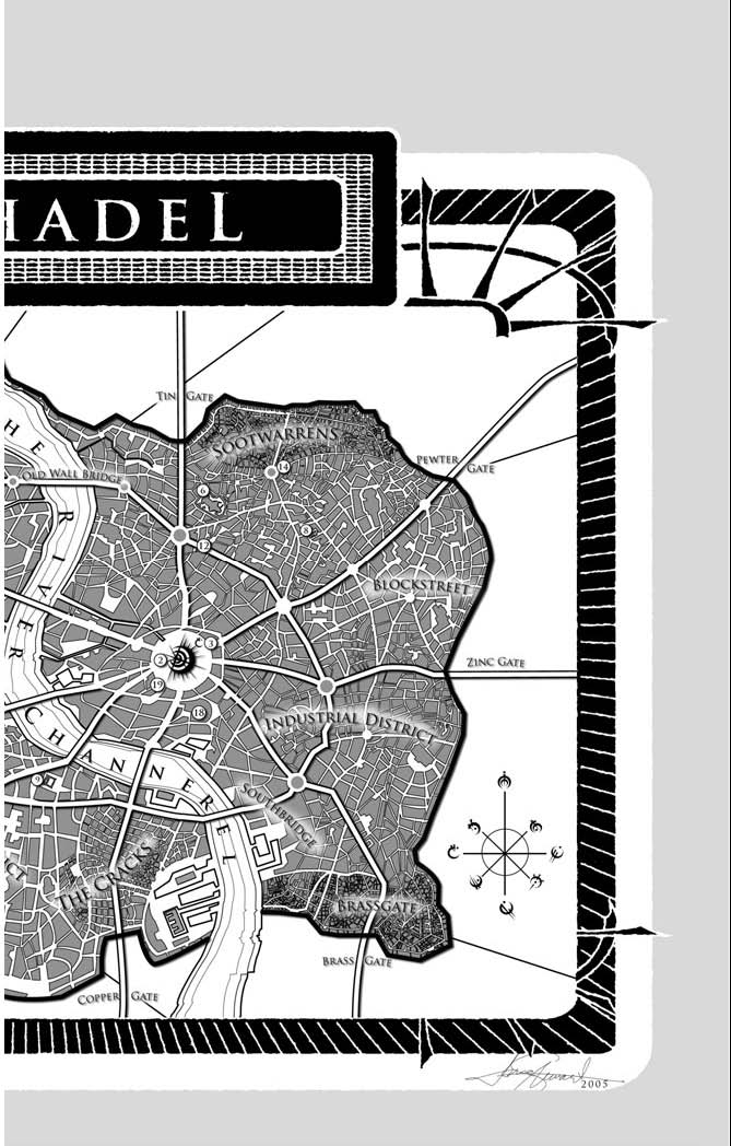 In addition, I’d like to acknowledge some of the very important people who work behind the scenes on the books that you buy. Irene Gallo, the art director at Tor, does a brilliant job—it’s because of her that both this book and Elantris have the wonderful covers that they do. Also, David Moench, in the Tor publicity department, went far beyond the call of duty in helping make Elantris a success. Both have my thanks.