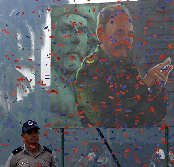 sobre un cartel de Fidel Castro, en Camagüey. (Foto:
