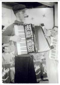 Photo of an accordion player smoking a
