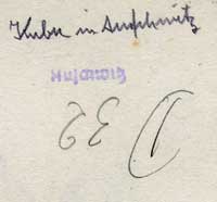 paper, rubber stamp: Auschwitz, pencil