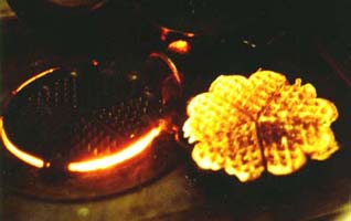 Ernst makes waffles taught to him by mother Z on an ancient wood burning stove |