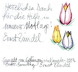 For any donation of $20.- or more, you will receive a an 8 1/2 by