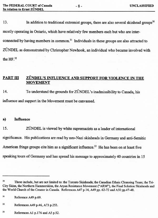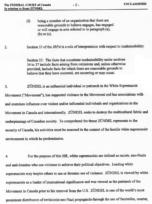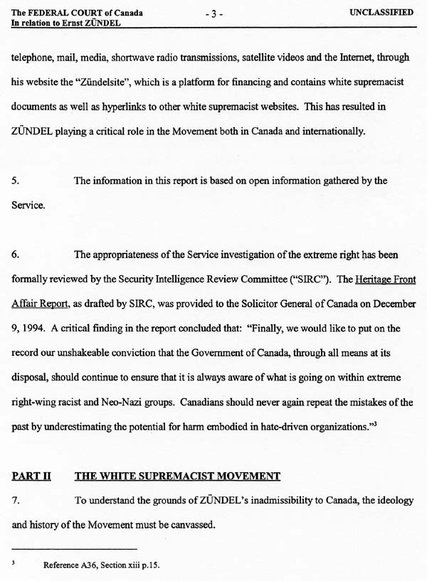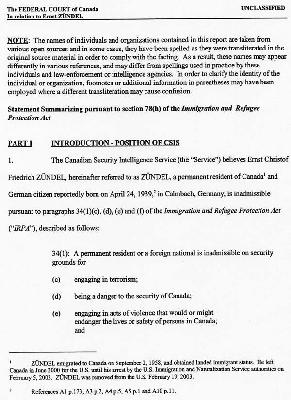 Unclassified report from the Canadian Security "Intelligence" Service (CSIS) prepared for the Security Certificate [Section 77(1)]
