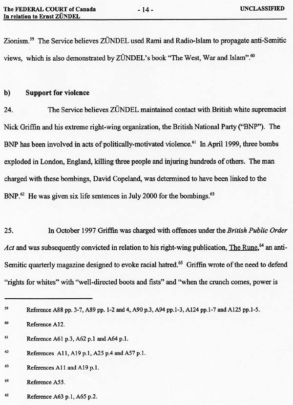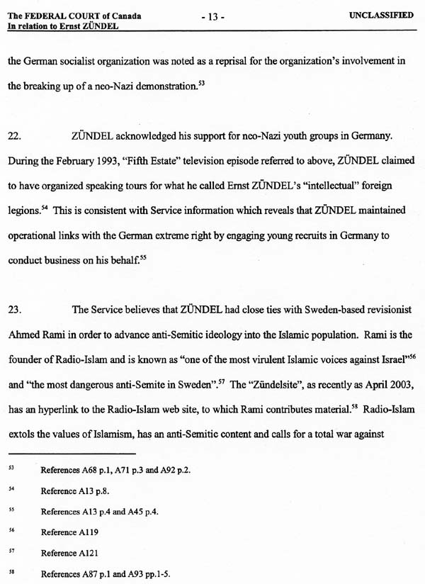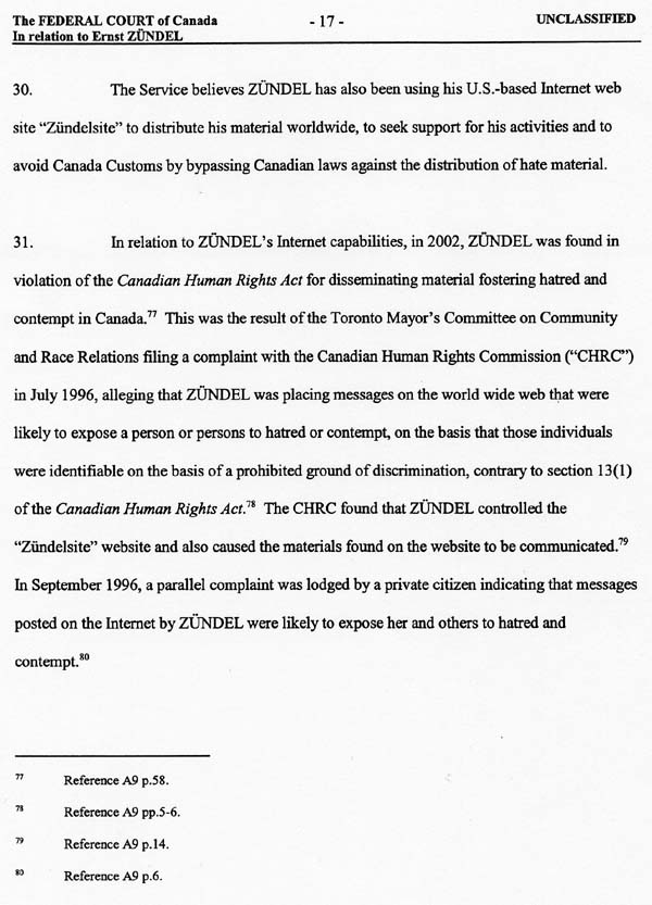 Unclassified report from the Canadian Security "Intelligence" Service (CSIS) prepared for the Security Certificate [Section 77(1)]