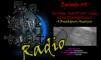 In episode #40 of The Black Vault Radio — Join me, John Greenewald, Jr., as I breakdown the new Freedom of Information Act (FOIA) release of e-mails to/from Mr. Luis Elizondo. Discover the origins and the truth behind the three “UFO” videos touted by To The Stars Academy of Arts & Science — the same ones you have seen on countless news stories. Find out about the process Mr. Elizondo utilized to have these three “UFO” of “UAP” videos reviewed by the Pentagon, and what the e-mails reveal about the videos themselves. I’ll even go through what the e-mails DON’T reveal, despite what some may want you to think.