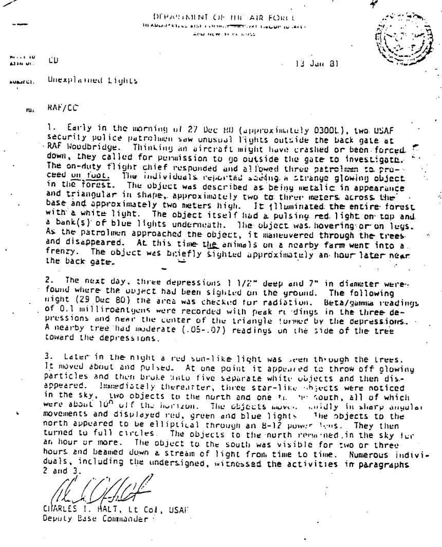 With physical trace evidence left behind in the area, the US Air Force would later try, but fail, to explain what happened. The case remains unexplained to this day.