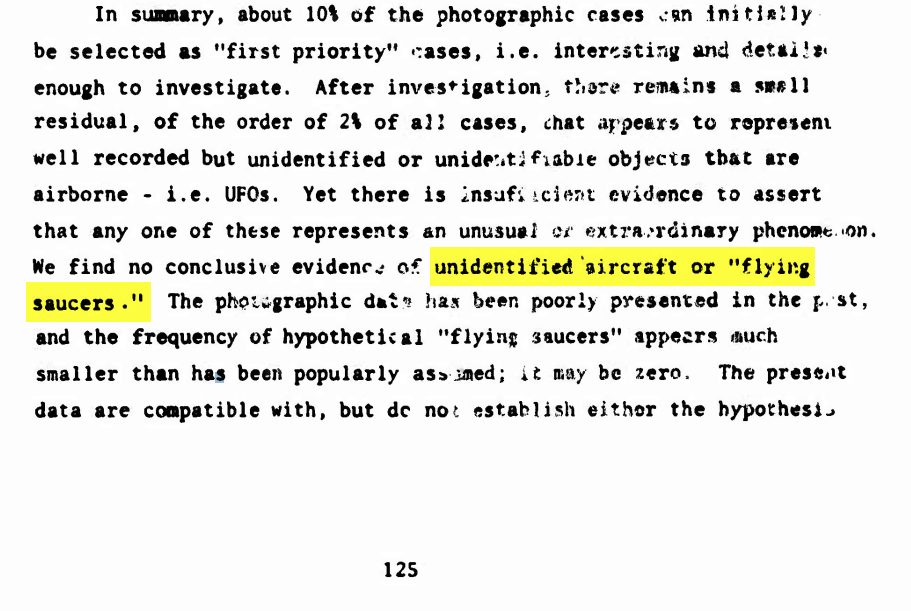 With that question looming at least in my mind, I aimed to find out. First, I will bring up the fact that within The Black Vault for quite some time, I have had an original copy of what is known as the “Condon Report.” If you know what that is; don’t assume where I am about to go with this. For those who aren’t aware, this document contained the findings of a committee formed at the University of Colorado in 1966, which lasted through 1968, that analyzed hundreds of UFO files from the Air Force’s Project Blue Book. Their determination was expected. They said there was nothing to the UFO phenomenon; they posed no national security threat; and they recommended no further study of them. Why am I bringing this report up, when we are all supposed to be keeping an optimistic outlook on these new “UFO Regulations” by the Navy? Well, because simply it connects the phrase “unidentified aircraft” directly with “flying saucers.” Page 125 of the Condon Report stated: